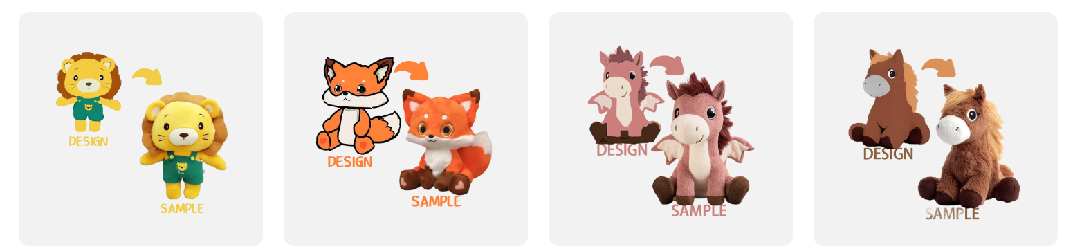 Banyak pelanggan yang sering bertanya: "Saya punya desain, bisakah Anda membuatnya menjadi mainan mewah?" "Berapa jumlah minimum pemesanan? Apakah produk jadinya akan terlihat seperti aslinya?" “Apakah cocok untuk anak-anak? Apakah aman?”